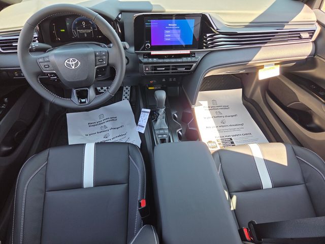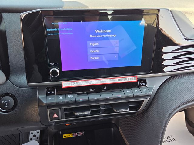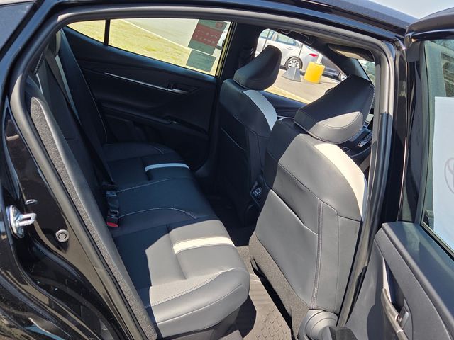 Black w/SofTex and Fabric Seat Trim, 4-Wheel Disc Brakes, 6 Speakers, ABS brakes, Air Conditioning, Alloy wheels, AM/FM radio: SiriusXM, Apple CarPlay/Android Auto, Auto High-beam Headlights, Automatic temperature control, Brake assist, Bumpers: body-color, Delay-off headlights, Driver door bin, Driver vanity mirror, Dual front impact airbags, Dual front side impact airbags, Electronic Stability Control, Emergency communication system: Safety Connect (5-year trial), Exterior Parking Camera Rear, Four wheel independent suspension, Front anti-roll bar, Front Bucket Seats, Front Center Armrest, Front dual zone A/C, Front reading lights, Front Seats, Fully automatic headlights, Heated door mirrors, Heated Front Seats, Illuminated entry, Knee airbag, Leather Shift Knob, Leather steering wheel, Low tire pressure warning, Occupant sensing airbag, Outside temperature display, Overhead airbag, Overhead console, Panic alarm, Passenger door bin, Passenger vanity mirror, Power door mirrors, Power driver seat, Power steering, Power windows, Radio data system, Radio: 12.3" Toyota Multimedia Audio, Radio: 8" Toyota Audio Multimedia, Rear anti-roll bar, Rear reading lights, Rear seat center armrest, Rear window defroster, Remote keyless entry, Security system, SofTex and Fabric Seat Trim, Speed control, Speed-sensing steering, Split folding rear seat, Spoiler, Steering wheel mounted audio controls, Telescoping steering wheel, Tilt steering wheel, Traction control, Trip computer, Turn signal indicator mirrors, Variably intermittent wipers, and Wheels: 19" Satin Black-Finished Alloy.