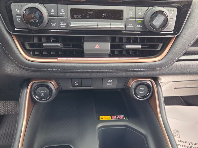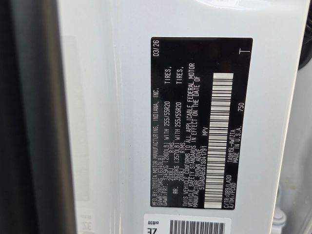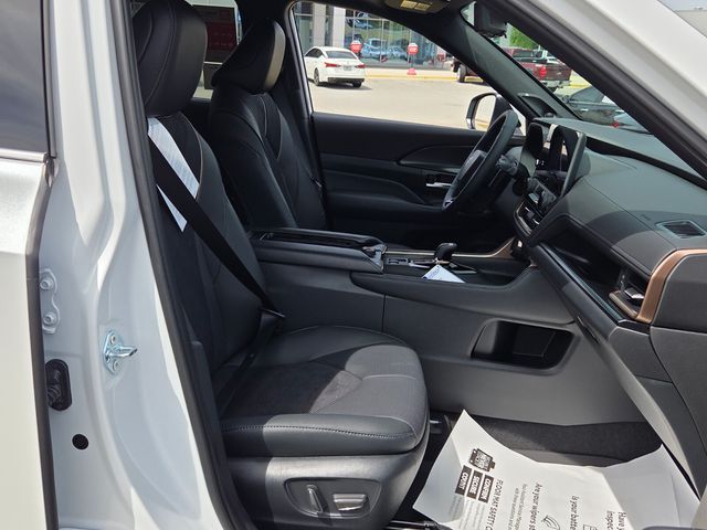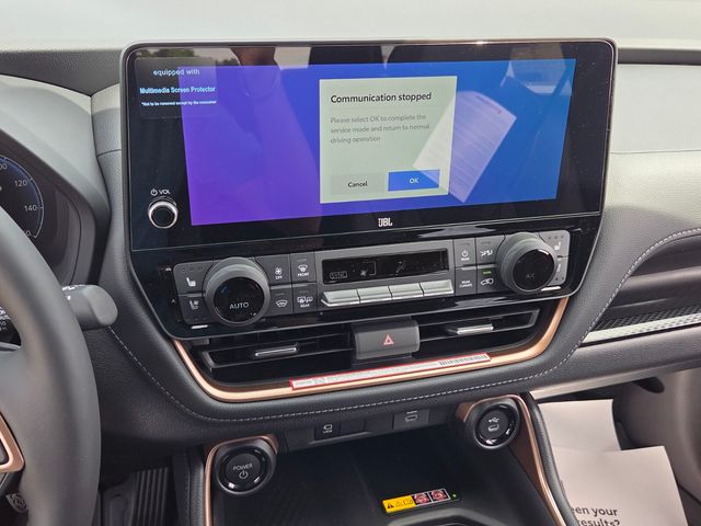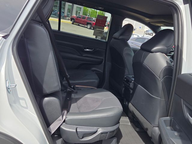 2.4L 4-Cylinder, 11 Speakers, 3rd row seats: split-bench, 4-Wheel Disc Brakes, ABS brakes, Air Conditioning, Alloy wheels, AM/FM radio: SiriusXM, Apple CarPlay/Android Auto, Auto High-beam Headlights, Auto-dimming Rear-View mirror, Automatic temperature control, Brake assist, Bumpers: body-color, Delay-off headlights, Driver door bin, Driver vanity mirror, Dual front impact airbags, Dual front side impact airbags, Electronic Stability Control, Emergency communication system: Safety Connect (up to 10-year trial subscription), Exterior Parking Camera Rear, Four wheel independent suspension, Front anti-roll bar, Front Bucket Seats, Front Center Armrest, Front dual zone A/C, Front fog lights, Front reading lights, Fully automatic headlights, Garage door transmitter: HomeLink, Heads-Up Display, Heated and Ventilated Front Seats, Heated door mirrors, Heated front seats, Heated rear seats, Heated steering wheel, Illuminated entry, Knee airbag, Leather Shift Knob, Leather steering wheel, Low tire pressure warning, Memory seat, Navigation system: Drive Connect Cloud Navigation (1-year trial subscription), Occupant sensing airbag, Outside temperature display, Overhead airbag, Overhead console, Panic alarm, Passenger door bin, Passenger vanity mirror, Power door mirrors, Power driver seat, Power Liftgate, Power moonroof, Power passenger seat, Power steering, Power windows, Radio: 12.3" Toyota Audio Multimedia with JBL Audio, Rain sensing wipers, Rear air conditioning, Rear anti-roll bar, Rear reading lights, Rear window defroster, Rear window wiper, Reclining 3rd row seat, Remote keyless entry, Security system, Speed control, Speed-sensing steering, Split folding rear seat, Spoiler, Steering wheel mounted audio controls, Telescoping steering wheel, Tilt steering wheel, Traction control, Trip computer, Turn signal indicator mirrors, Ultrasuede/Leather Seat Trim, Variably intermittent wipers, Ventilated front seats, Ventilated rear seats, and Wheels: 20" 2-Tone Multi-Spoke Aluminum.