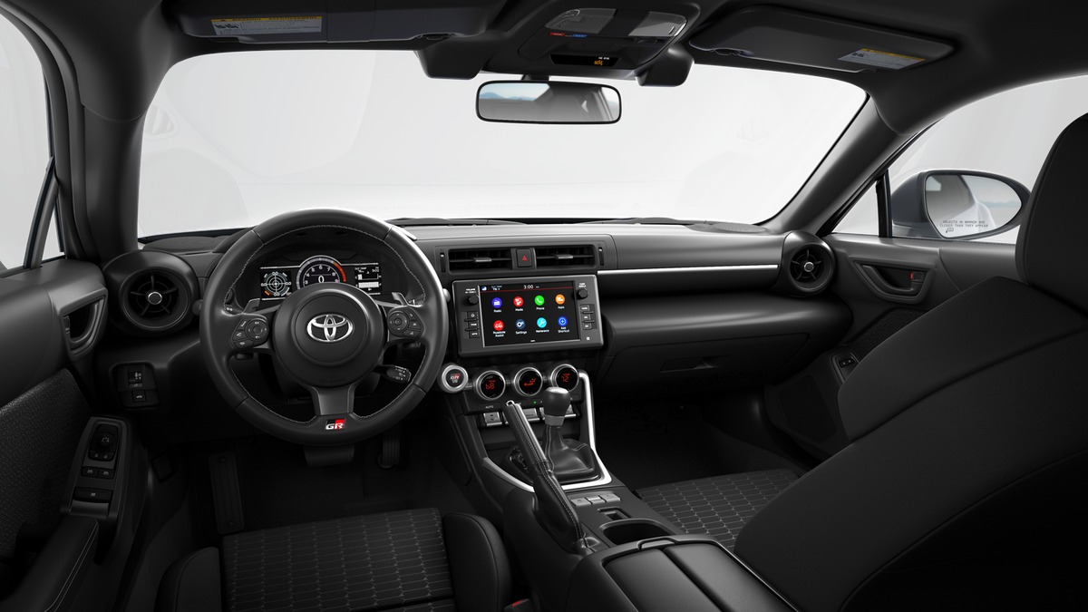 - GR86 Audio—includes 8-in. touchscreen, six speakers, Apple CarPlay® & Android Auto™ compatibility, SiriusXM® 3-month trial subscription. See toyota.com/audio-multimedia for details.
