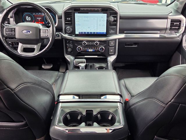 1 Owner, Accident free CarFax!, Heated and ventilated front seats, Navigation, GPS, Panoramic moonroof/sunroof, Back up camera, Bluetooth, Apple CarPlay, Android Auto, Remote Start, F-150 Lariat, 4D SuperCrew, 3.5L PowerBoost Full-Hybrid V6, 10-Speed Automatic, 4WD, 2nd Row Heated Seats, 4x4 FX4 Off-Road Bodyside Decal, Active Park Assist 2.0, BlueCruise Hands-Free Driving, Class IV Trailer Hitch Receiver, Equipment Group 502A High, Extended Range 36 Gallon Fuel Tank, Ford Co-Pilot360 Active 2.0 Package, Ford Co-Pilot360 Assist 2.0, FX4 Off-Road Package, Heated Steering Wheel, Hill Descent Control, Integrated Trailer Brake Controller, Lariat Chrome Appearance Package, Leather-Trimmed Bucket Seats, LED Projector w/Dynamic Bending Headlamps, Max Trailer Tow Package, Monotube Rear Shocks, Navigation system: Connected Navigation (90-Day Trial), Off-Road Tuned Front Shock Absorbers, Onboard 400W Outlet, Power Glass Sideview Mirr w/Chrome Skull Caps, Power Tilt/Telescoping Steering Column w/Memory, Pro Trailer Backup Assist, Radio: B&O Sound System by Bang & Olufsen, Rain-Sensing Wipers, Rock Crawl Mode, Tray Style Floor Liner, Universal Garage Door Opener.