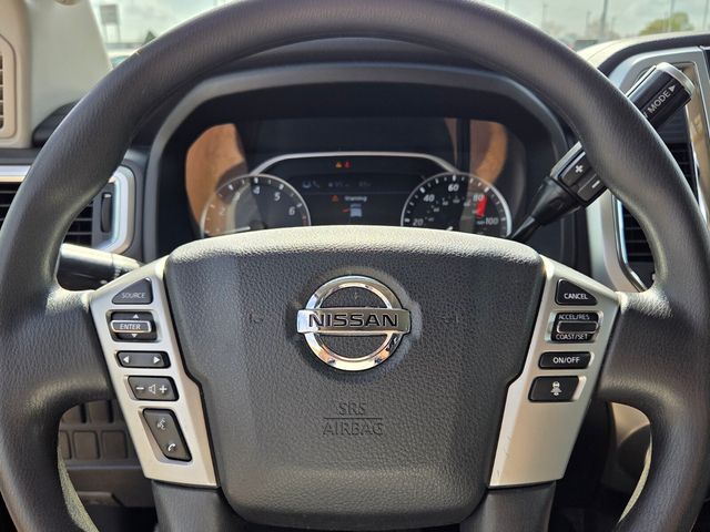 Powered by a robust 5.6L V8 engine delivering 400 horsepower, this Titan SV delivers the muscle you need to tackle any task. Paired with a smooth-shifting 9-speed automatic transmission and capable 4-wheel drive system, this truck is ready to conquer the road, the trail, or the job site.