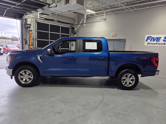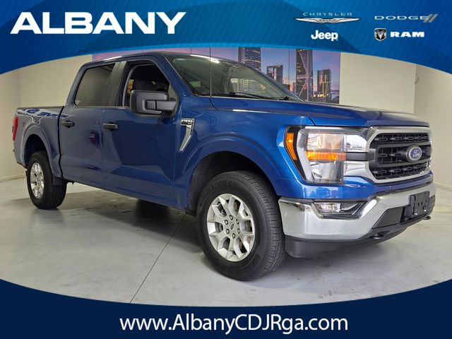 This 2023 Ford F-150 XLT in Atlas Blue Metallic is a highly capable 4WD SuperCrew equipped with the powerful 3.5L V6 EcoBoost engine and a 10-speed automatic transmission. With only 40,932 miles on the odometer, this vehicle is currently priced at $37,500, which is significantly below its KBB value of $45,325. It features a clean interior with Black and Medium Dark Slate cloth 40/20/40 seating and has passed a comprehensive 167-point inspection. Key amenities include a rear back-up camera, Bluetooth technology, and the FX4 Off-Road Package.