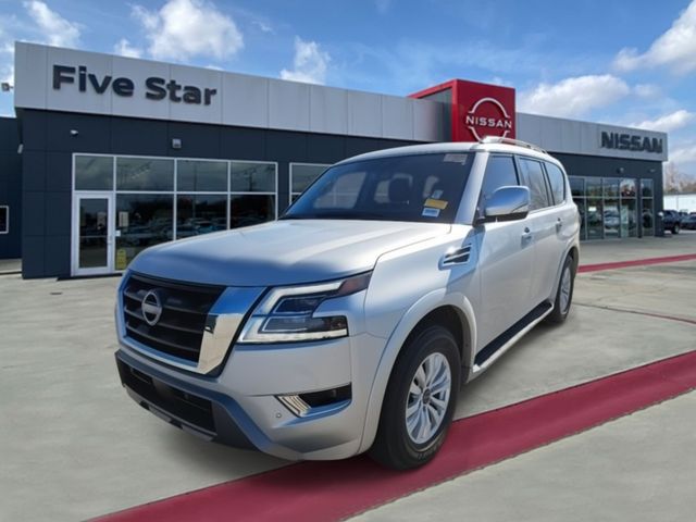 2023 Nissan Armada SV Brilliant Silver Metallic 4D Sport Utility 5.6L V8 DOHC 32V LEV3-ULEV125 400hp RWD !! ONE OWNER !!! CLEAN CARFAX !! 3RD ROW SEATING ** BALANCE OF FACTORY WARRANTY *** REAR BACK UP CAMERA *** HEATED SEATS *** BLUETOOTH ** APPLE CARPLAY / ANDROID AUTO !! REMOTE START !! KEYLESS ACCESS ENTRY !! WIRELESS CHARGING !! BLIND SPOT MONITOR SYSTEM, ** VOICE RECOGNITION ** ADAPTIVE CRUISE CONTROL ** WiFi Hotspot **