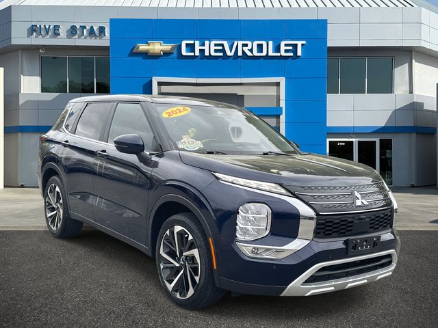 Five Star Chevrolet Mercedes-Benz BMW is proud to offer this great 2024 Mitsubishi Outlander in Cosmic Blue Metallic. This 2024 Mitsubishi Outlander has passed our comprehesive inspection and comes with the following features; ABS brakes, Active Cruise Control, Alloy wheels, Electronic Stability Control, Front dual zone A/C, Heated door mirrors, Heated Front Bucket Seats, Heated front seats, Illuminated entry, Low tire pressure warning, Navigation System, Power Liftgate, Remote keyless entry, Traction control, 3rd row seats: split-bench, 4-Wheel Disc Brakes, 5.694 Axle Ratio, 6 Speakers, Air Conditioning, AM/FM radio: SiriusXM, Android Auto & Apple CarPlay, Auto High-beam Headlights, Automatic temperature control, Brake assist, Bumpers: body-color, Driver door bin, Driver vanity mirror, Dual front impact airbags, Dual front side impact airbags, Emergency communication system: Mitsubishi Connect w/ 24-month trial, Exterior Parking Camera Rear, Four wheel independent suspension, Front anti-roll bar, Front Bucket Seats, Front Center Armrest w/Storage, Front fog lights, Front reading lights, Fully automatic headlights, Knee airbag, Leather Shift Knob, Leather steering wheel, Occupant sensing airbag, Outside temperature display, Overhead airbag, Overhead console, Panic alarm, Passenger door bin, Passenger vanity mirror, Power door mirrors, Power driver seat, Power steering, Power windows, Radio data system, Radio: AM/FM 9.0" Navigation w/Smartphone Link, Rain sensing wipers, Rear anti-roll bar, Rear seat center armrest, Rear side impact airbag, Rear window defroster, Rear window wiper, Reclining 3rd row seat, Security system, Speed control, Speed-Sensitive Wipers, Split folding rear seat, Spoiler, Steering wheel mounted audio controls, Synthetic Leather Seat Trim, Tachometer, Telescoping steering wheel, Tilt steering wheel, Trip computer, Turn signal indicator mirrors, Variably intermittent wipers, and Wheels: 20" Two-Tone Alloy. ABS brakes, Active Cruise Control, Alloy wheels, Electronic Stability Control, Front dual zone A/C, Heated door mirrors, Heated Front Bucket Seats, Heated front seats, Illuminated entry, Low tire pressure warning, Navigation System, Power Liftgate, Remote keyless entry, Traction control.