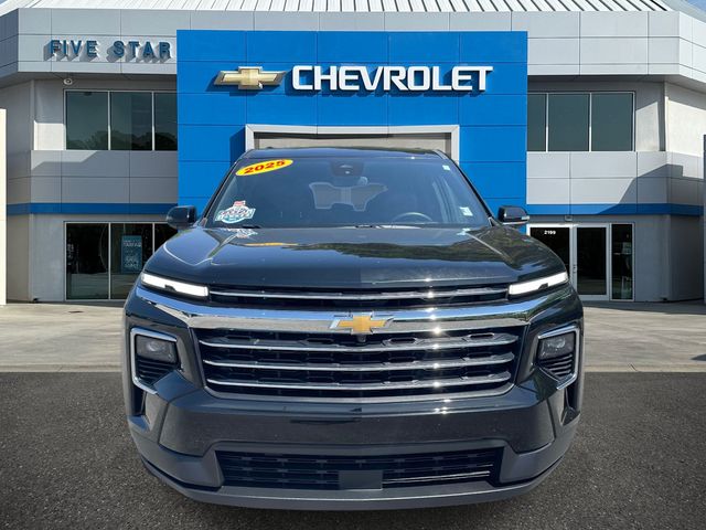 Five Star Chevrolet Mercedes-Benz BMW is proud to offer this wonderful 2025 Chevrolet Traverse in Black Metallic. This 2025 Chevrolet Traverse has passed our comprehesive inspection and comes with the following features; Preferred Equipment Group 1LT, 3rd row seats: split-bench, 4-Way Manual Front Passenger Seat Adjuster, 4-Wheel Disc Brakes, 6 Speakers, 6-Speaker Audio System Feature, 8-Way Power Driver Seat Adjuster, ABS brakes, Air Conditioning, Alloy wheels, AM/FM radio: SiriusXM with 360L, Apple CarPlay/Android Auto, Auto High-beam Headlights, Automatic temperature control, Brake assist, Bumpers: body-color, Child-Seat-Sensing Airbag, Compass, Delay-off headlights, Driver door bin, Driver vanity mirror, Dual front impact airbags, Dual front side impact airbags, Electronic Stability Control, Emergency communication system: OnStar, Four wheel independent suspension, Front anti-roll bar, Front Bucket Seats, Front Center Armrest, Front dual zone A/C, Front reading lights, Fully automatic headlights, Heated door mirrors, Heated front seats, Heated steering wheel, Illuminated entry, Low tire pressure warning, Navigation System, Occupant sensing airbag, Outside temperature display, Overhead airbag, Overhead console, Panic alarm, Passenger door bin, Passenger vanity mirror, Power door mirrors, Power driver seat, Power Liftgate, Power steering, Power windows, Premium Cloth Seat Trim, Radio data system, Radio: : Audio System w/17.7" Diagonal Display, Rear air conditioning, Rear anti-roll bar, Rear reading lights, Rear window defroster, Rear window wiper, Remote keyless entry, Security system, SiriusXM with 360L Trial Subscription, Speed control, Speed-sensing steering, Spoiler, Steering wheel mounted audio controls, Tachometer, Telescoping steering wheel, Tilt steering wheel, Traction control, Trip computer, Turn signal indicator mirrors, Variably intermittent wipers, Voltmeter, and Wheels: 18" Grazen Metallic Machined-Face Aluminum.